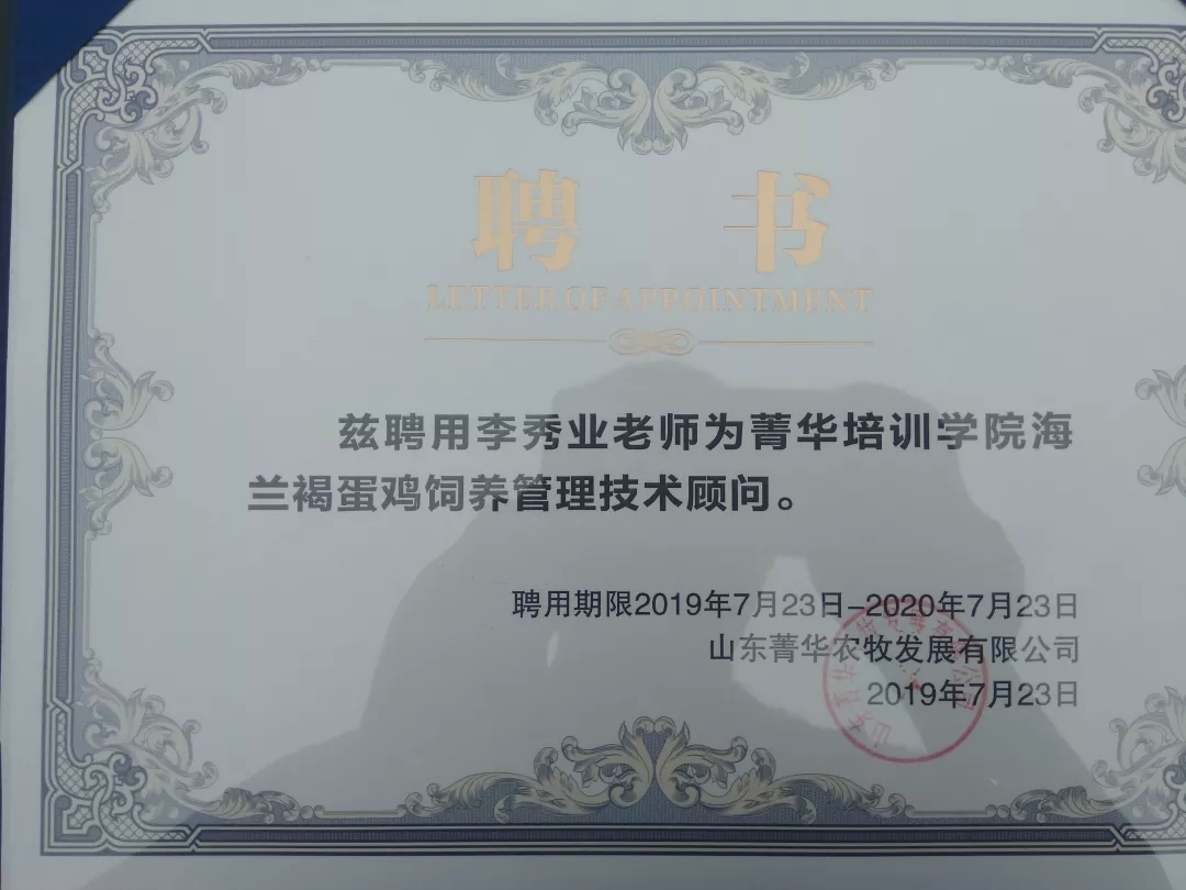 山東菁華農(nóng)牧發(fā)展有限公司特聘請華裕農(nóng)業(yè)科技有限公司副總裁李秀業(yè)作為華裕海蘭菁華培訓(xùn)基地的首席技術(shù)顧問。