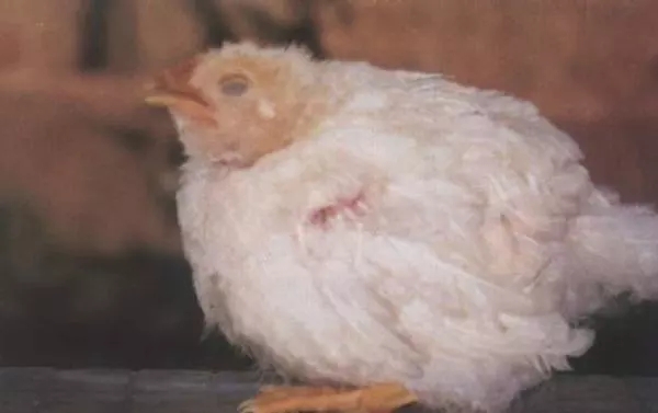 它主要侵害2-5周齡的雞,2周齡以內(nèi)的雛雞也可能病。病雞表現(xiàn)明顯的精神沉郁,閉眼嗜睡,食欲減退,腹瀉以及羽毛粗亂無(wú)光易折斷。病雞生長(zhǎng)發(fā)育受阻,排黑色、灰色稀便,有時(shí)混有血液。與小腸球蟲(chóng)病并發(fā)時(shí),糞便稍稀呈柿黃色或間有肉樣糞便。病程稍長(zhǎng),有的出現(xiàn)神經(jīng)癥狀。病雞翅腿麻痹、顫動(dòng)、站立不起、癱瘓、雙翅拍地,觸摸時(shí)發(fā)出尖叫聲。
